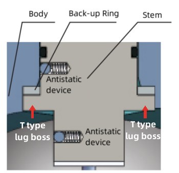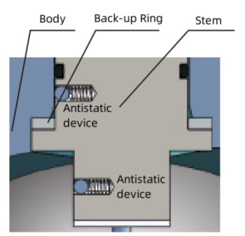 2. Due dispositivi antistatici : abbiamo due dispositivi antistatici nello stelo: uno tra la sfera e lo stelo e l'altro tra il corpo valvola e lo stelo. Questo design può prevenire potenziali rischi causati dall'accumulo di elettricità statica.
