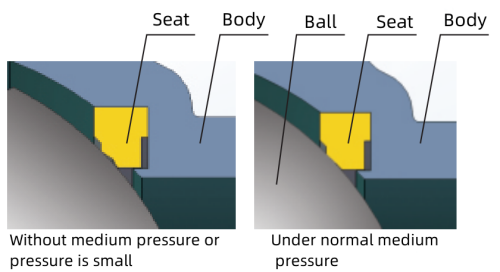 Le sedi morbide sono realizzate con materiali morbidi, come PTFE, PTFE, PPL, PEEK e altri materiali compositi. Queste sedi sono contenute all'interno di un anello di sede in metallo monopezzo. Quando non c'è pressione o la pressione è bassa, la tenuta tra la sede morbida e la sfera viene ottenuta grazie alla forza elastica delle molle. Quando la pressione nel tubo aumenta, la pressione media e le molle del sedile lavorano insieme per garantire una buona tenuta.